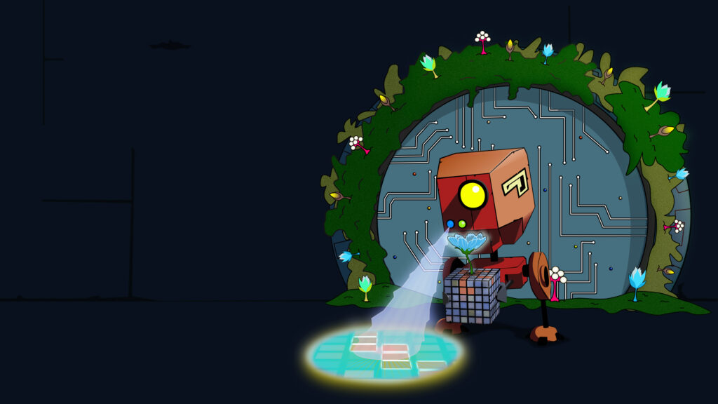 Take the role of maintenance robot Sp1k-E. When roots sprout from an alien seed pod, and burrow deep into a spacecraft’s exposed wiring, the resulting power surge turns this doormat automaton into the first of a new kind of lifeform.